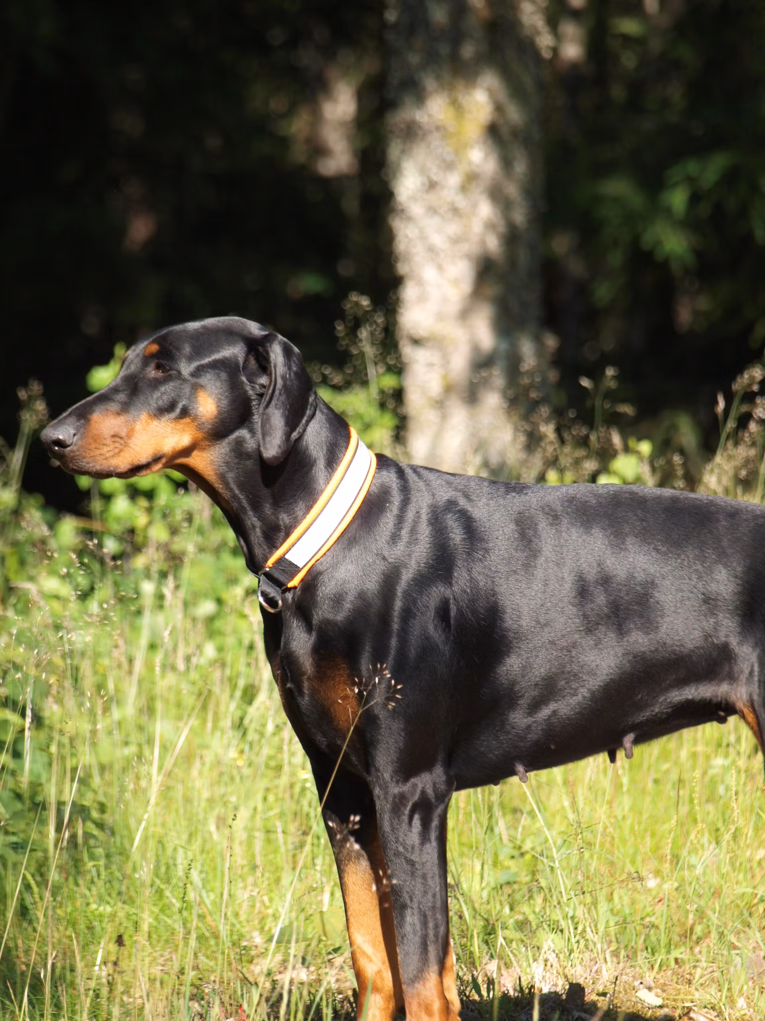Reflexalternativ: För extra säkerhet under kvällspromenader erbjuder vi modeller med reflex. Dessa reflekterande detaljer gör din hund synlig i mörker, vilket ger dig sinnesro när ni är ute på promenad.