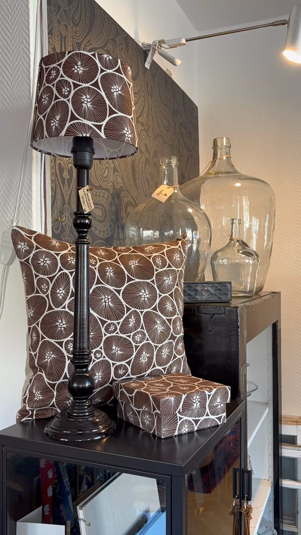 Alla lampskärmar tillverkas på beställning av unika textilier och producerade i små serier lokalt i vår ateljé i Villastaden, Borås. Våra lampskärmar är det perfekta tillskottet till ditt hem. Passform: Klo-fattning. Passar vanliga glödlampor samt medelstora och stora baser. Tyget vi använder är exklusivt tyg från våra inredningsprojekt efter tillgång.